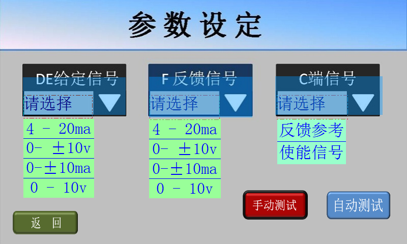 7、手動測試基本正常后,點擊屏幕左下方的返回鍵,返回參數(shù)設(shè)定畫面;